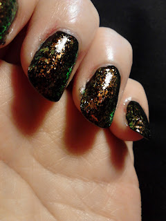 I started with SH Xtreme Wear polish in Black Out, and then topped it with a coat of Essie Shine of the Times and a coat of SV